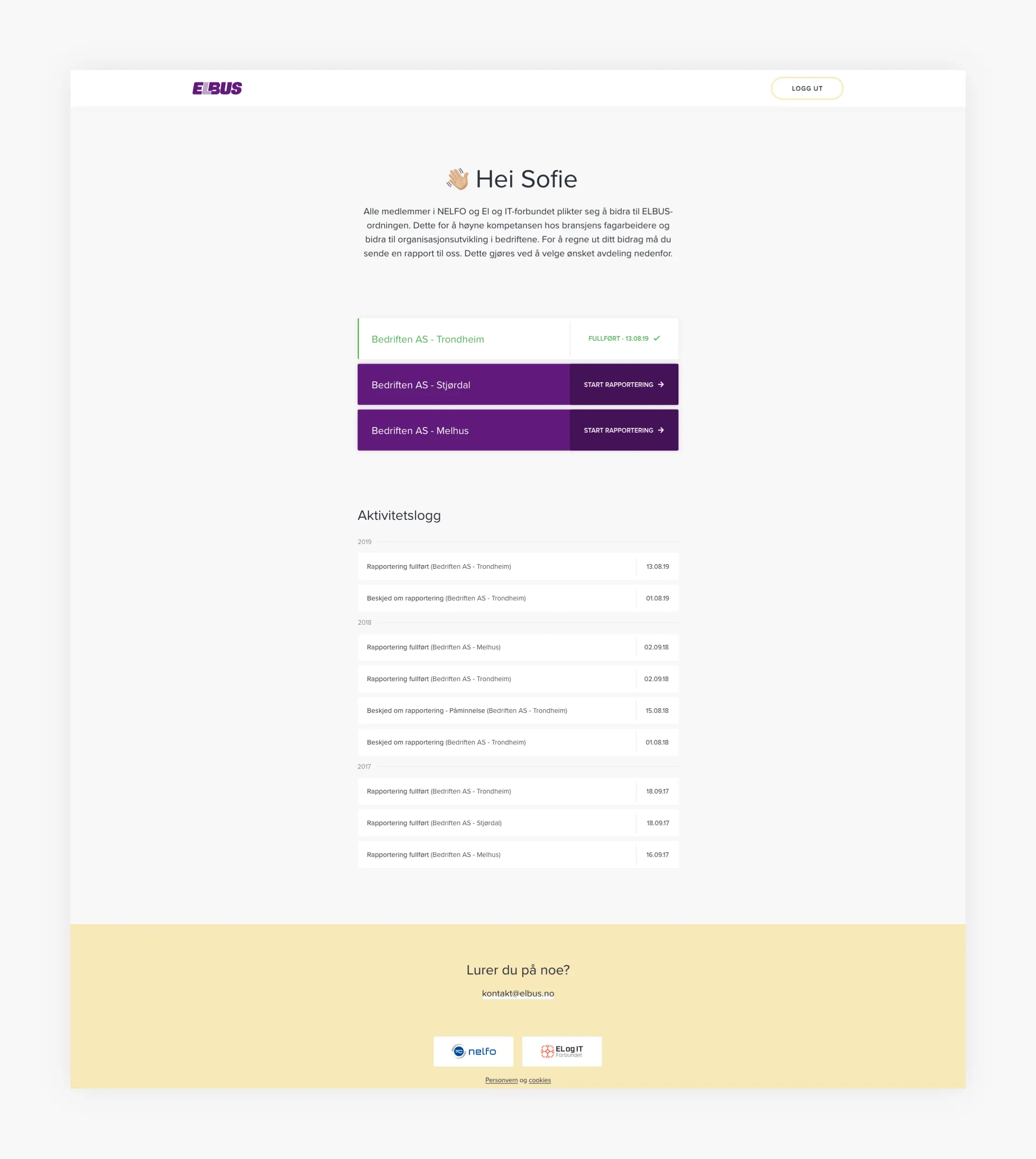 ELBUS – ordningen er et samarbeid mellom NELFO og EL og IT Forbundet. ELBUS er en ordning for medlemsbedrifter og ansatte, hvor tariffavtalen Landsoverenskomsten for elektrofagene er gjort gjeldene.. ELBUS samler inn midler fra alle medlemsbedrifter og bruker disse til kompetanseheving for fagarbeidere, FoU og organisasjonsutvikling. Inndrivingen av disse midlene har vært manuelle og utført gjennom rapportering i excel og med flere aktører involvert på ulikt nivå i de ulike organisasjonene.