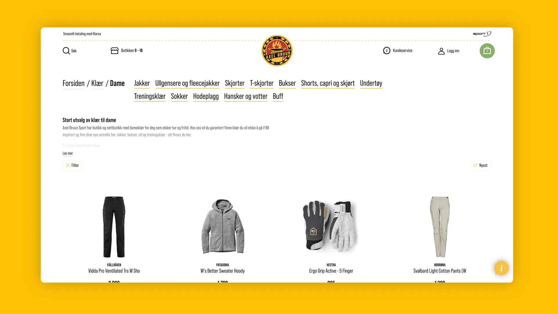 Med et nytt design på plass kunne vi gå over til å optimalisere kjøpsopplevelsen og gjøre det enkelt for besøkende å finne rett kategori og produkt, fokusere på færrest mulig klikk fram til kjøp og legge opp til en enkel og god betalingsopplevelse med Klarna.